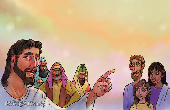 help, Jesus, teaching, crowd, poor, cartoon, pharisee, sadducee