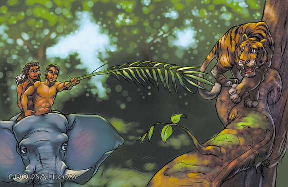 tiger, adam, eve, garden, elephant, eden, shy, palm branch, eden 2, bacas0121