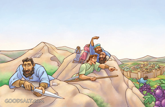 city, bunch, promise, jericho, spies, fruit, canaan, hills, grapes, bunches, bacas0257, the spies