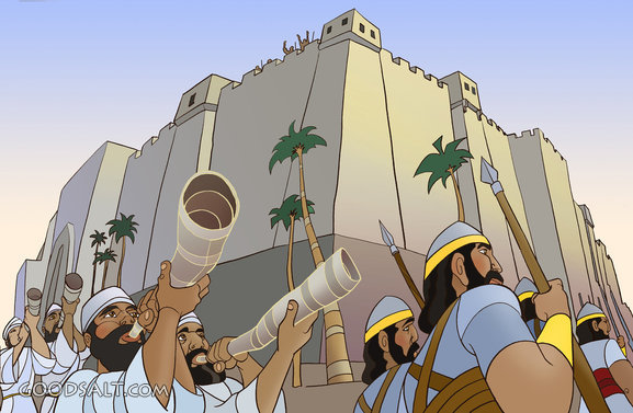 city, fall, battle, soldier, joshua, cartoon, israel, jericho, trumpets, walls