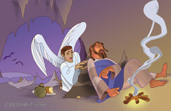 angel, care, elijah, flee, fire, cartoon, sleep, jezebel