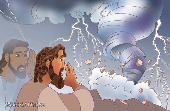 god, Jesus, voice, whirlwind, elijah, cartoon, whisper, still, small voice