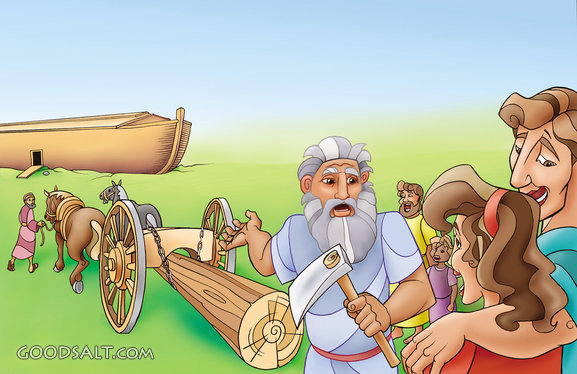 build, wicked, ark, prophet, flood, cartoon, noah, antediluvian