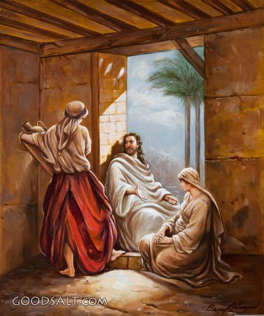 Jesus at the House of Martha and Mary Luke 10:40 Luke 10:41-42 Jesus, conversation, women, mary, sisters, friends, mary and martha, martha upset, martha angry, feet of jesus PROJECTION - License for PowerPoint™ PRINT – buy a print of this picture; optional frame Bible Hub |