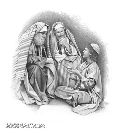 Christ Teaching As a Boy Luke 2:46-47 christ, Jesus, talk, talking, discussing, discussion, discuss, teen, teenager, boy, men, philosophy, scribes, philosophers PROJECTION - License for PowerPoint™ PRINT – buy a print of this picture; optional frame Bible Hub |