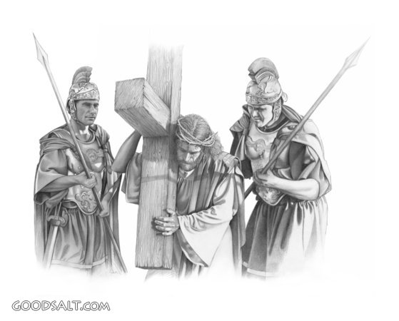 Jesus Carries Cross John 19:17 salvation, carrying, christ, Jesus, men, ridicule, death, cross, of, sacrifice, easter, passion, crucifixion, crucify, the, males, soldiers PROJECTION - License for PowerPoint™ PRINT – buy a print of this picture; optional frame Bible Hub |