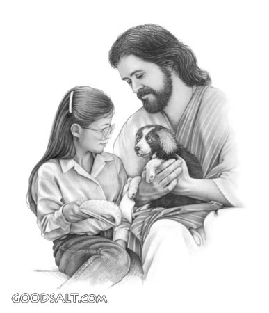 Jesus With Girl and Puppy