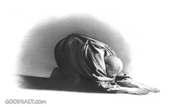 Man Bows in Prayer