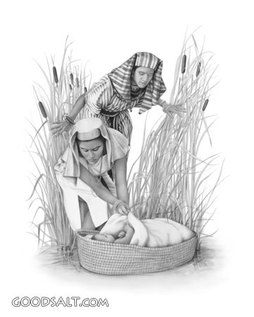 Moses and Pharo's Daughter Exodus 2:6 water, baby, infant, river, egypt, basket, daughter, female, moses, egyptian, hebrew, pharaoh, handmaiden, pharaoh's PROJECTION - License for PowerPoint™ PRINT – buy a print of this picture; optional frame Bible Hub |
