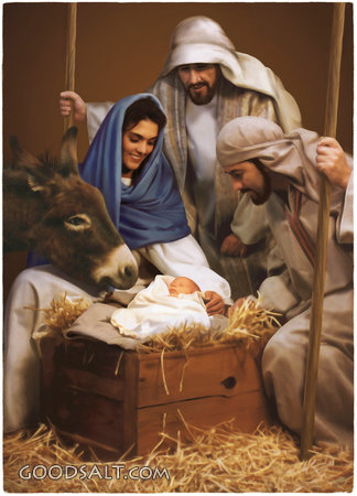 Baby Jesus and Visit by Shepherds Luke 2:7 born, christ, nativity, Jesus, woman, child, boy, men, shepherd, cloth, baby, mary, manger, mother, christmas, stable, newborn, donkey PROJECTION - License for PowerPoint™ PRINT – buy a print of this picture; optional frame Bible Hub |
