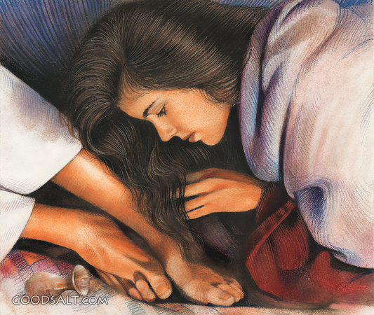 Woman Washes the Feet of Jesus Luke 7:37-38 wash, drying, water, dry, honoring, expensive, kiss, kissed, saved, forgiven, peace, woman, humble, man, feet, mary, foot, faith, sinner, magdalene, hair, oil, anointed, honor, ointment, perfume, alabaster, tears, wiped, sins PROJECTION - License for PowerPoint™ PRINT – buy a print of this picture; optional frame Bible Hub |
