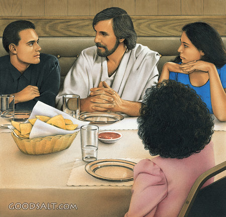 Jesus Dines With Friends Matthew 18:20 wait, waiting, people, modern, christ, Jesus, talk, talking, lunch, conversation, eat, eating, current, order, hispanic, ethnic, african, american, food, meal, urban, event, converse, social, group, mix, young, together, dinner, dining, restaurant, friends, teens, diner, adults PROJECTION - License for PowerPoint™ PRINT – buy a print of this picture; optional frame Bible Hub |
