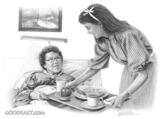 sick, breakfast, girl, woman, elderly, old, women, food, bed, young, female