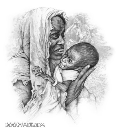 Hungry African Mother and Child
