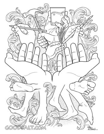 His Hands and Feet 1 Corinthians 12:27 Matthew 28:16-20 Matthew 10:42 Colossians 3:23 Psalm 90:17 sculpture, service, feet, hands, artist, body of christ, great commission, coloring page, coloring pages, gscoloringpage, sevent PROJECTION - License for PowerPoint™ PRINT – buy a print of this picture; optional frame Bible Hub |