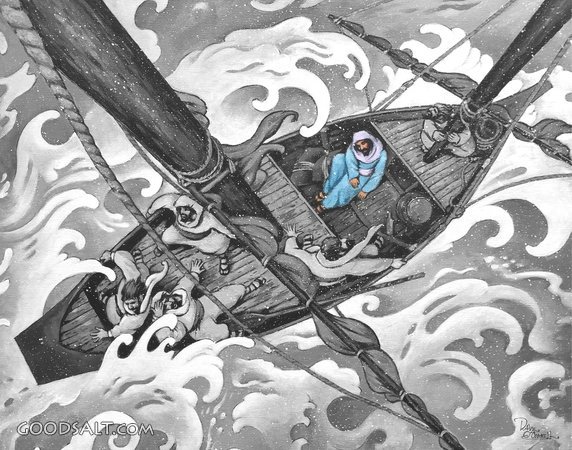 Prince of Peace Matthew 8:23-27 Mark 4:34-41 tempest, depression, peace, worry, scared, storm, boat, frighten, fishermen, prince of peace, jesus sleeping, acrylic, dave oconnell, peace maker PROJECTION - License for PowerPoint™ PRINT – buy a print of this picture; optional frame Bible Hub |