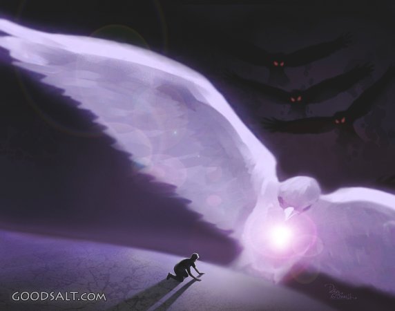 My Refuge and Shield Psalm 92:1-4 Ephesians 6:12 help, redeemer, rescue, protecting, savior, refuge, wings, feathers, dave oconnell, spiritual warefare PROJECTION - License for PowerPoint™ PRINT – buy a print of this picture; optional frame Bible Hub |