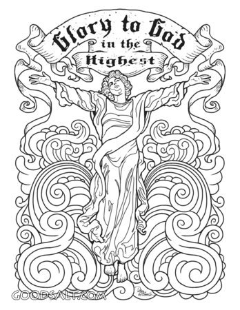 Glory to God Luke 2:14 Psalm 72:19 Psalm 24:7-8 Isaiah 61:10 angel, peace, worship, praise and worship images, highest, glory to god, coloring page, coloring pages, dave oconnell, gscoloringpage, heavenly body PROJECTION - License for PowerPoint™ PRINT – buy a print of this picture; optional frame Bible Hub |