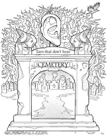 Cemetery of Ears Romans 10:17 Micah 7:16 Isaiah 42:19-20 Zechariah 7:11 Mark 8:18 Mark 8:18 rejected, cemetery, death, grave, ear, hearing, angels, deaf, tombstones, coloring page, coloring pages, dave oconnell, gscoloringpage PROJECTION - License for PowerPoint™ PRINT – buy a print of this picture; optional frame Bible Hub |