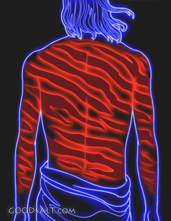 suffering, punishment, back, blood, whipped, crucifixion, neon, stripes