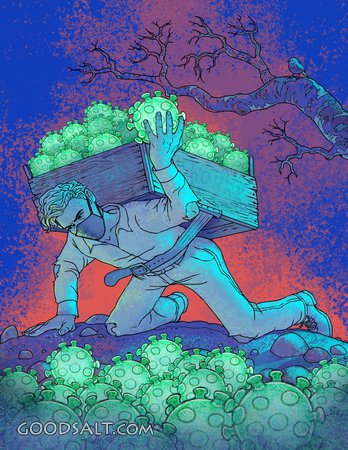 Covid Fear 2 Corinthians 10:5 1 John 3:8 Matthew 6:25-34 Hebrews 11 Psalm 9:18 Proverbs 3:5-6 hope, trust, fear, worry, scared, faith, pandemic, covid-19 PROJECTION - License for PowerPoint™ PRINT – buy a print of this picture; optional frame Bible Hub |