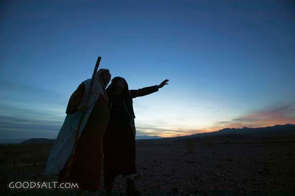 Two Isrealite Men in Silhouette Walking