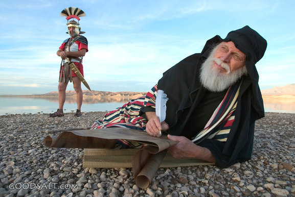 Revelation 1:9 Revelation 1:9 sky, lying, guarding, look, looking, rock, man, scroll, soldier, roman, parchment, pen, prophet, beach, guard, patriarch, feather PROJECTION - License for PowerPoint™ PRINT – buy a print of this picture; optional frame Bible Hub |