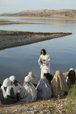 people, christ, Jesus, preaching, costume, preach, lake, hillside, river, crowd, headdress