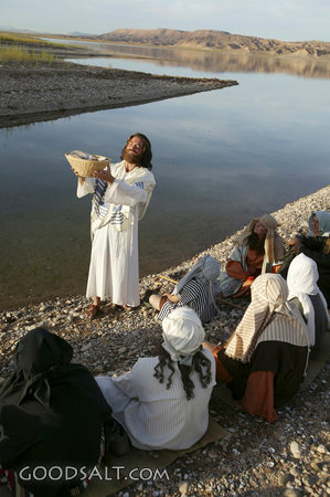 Matthew 14:19 Matthew 14:19 Mark 6:41 Luke 9:16 rocky, israelite, christ, Jesus, bless, blessing, food, bread, crowd, beach, basket, fish, smile, smiling, group PROJECTION - License for PowerPoint™ PRINT – buy a print of this picture; optional frame Bible Hub |