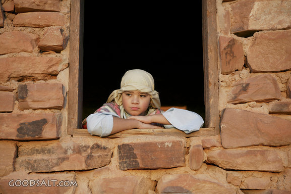 israelite, folded, stone, look, looking, child, boy, clay, wall, headdress, window, arm