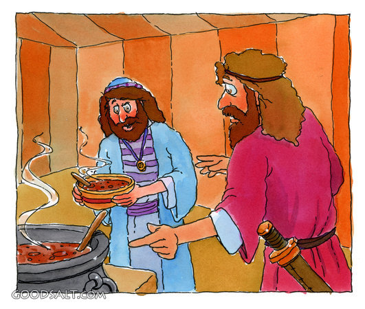 Esau Sells His Birthright Genesis 25:19-34 tent, cook, trade, jacob, birthright, esau, bargain, stew, jacob and esau, hochstatter, daniel j. hochstatter PROJECTION - License for PowerPoint™ PRINT – buy a print of this picture; optional frame Bible Hub |