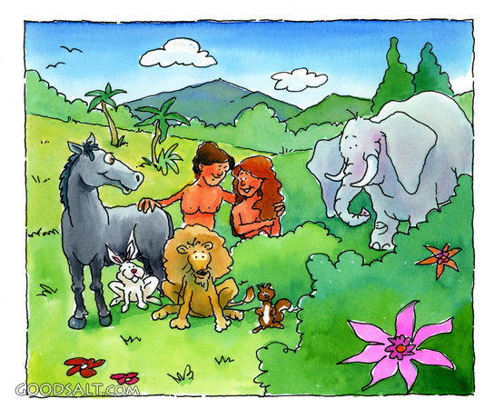 God Creates a Wonderful World Genesis 2:1-3 rabbit, lion, adam, eve, garden, elephant, donkey, eden, animals, garden of eden, hochstatter, daniel j. hochstatter PROJECTION - License for PowerPoint™ PRINT – buy a print of this picture; optional frame Bible Hub |
