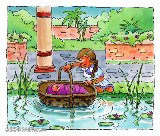 The Princess Finds Baby Moses Exodus 2:1-10 hidden, river, basket, moses, princess, reeds, baby moses, hochstatter, daniel j. hochstatter, moses in basket PROJECTION - License for PowerPoint™ PRINT – buy a print of this picture; optional frame Bible Hub |