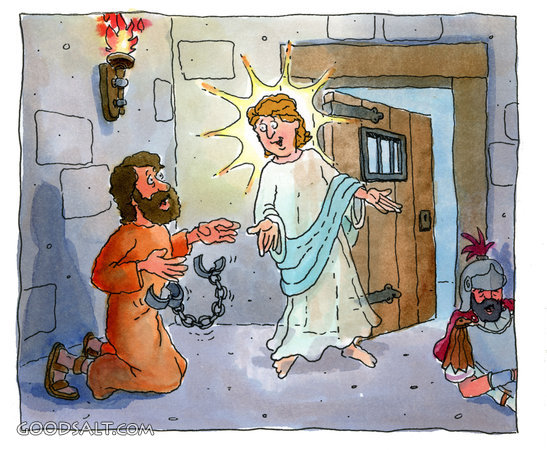 Peter Escapes From Prison Acts 12:6-19 angel, peter, light, escape, chains, hochstatter, daniel j. hochstatter, escape prison, chains fall off, angel leads peter PROJECTION - License for PowerPoint™ PRINT – buy a print of this picture; optional frame Bible Hub |