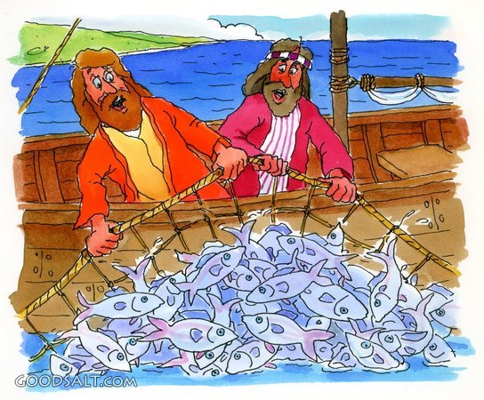 The Gigantic Catch Luke 5:5-7 overflowing, john, peter, boat, fish, fishing, james, net, fishermen, nets, sea of galilee, hochstatter, daniel j. hochstatter PROJECTION - License for PowerPoint™ PRINT – buy a print of this picture; optional frame Bible Hub |