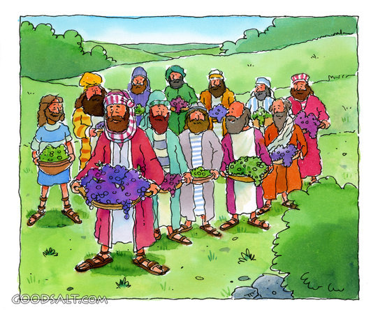The Twelve Spies Return Numbers 13:25-26 afraid, faith, joshua, moses, spies, wilderness, caleb, canaan, grapes, promised land, hochstatter, daniel j. hochstatter PROJECTION - License for PowerPoint™ PRINT – buy a print of this picture; optional frame Bible Hub |