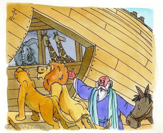 Noah Loads the Ark Genesis 7:1-3 obedience, ark, obey, noah, animals, noah's ark, hochstatter, daniel j. hochstatter, noah and the ark, two by two, loading the ark PROJECTION - License for PowerPoint™ PRINT – buy a print of this picture; optional frame Bible Hub |
