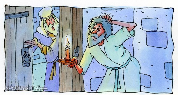 Teaching About Prayer Luke 11:1-13 midnight, prayer, persistence, hochstatter, daniel j. hochstatter, loaves of bread, knocking of door, visit friend at midnight PROJECTION - License for PowerPoint™ PRINT – buy a print of this picture; optional frame Bible Hub |