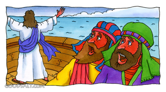 Jesus Stops the Storm Mark 4:35-41 water, lake, amazement, disciples, hochstatter, daniel j. hochstatter, jesus calms storm, jesus in boat, jesus raises arms, 2 disciples, disciples in boat PROJECTION - License for PowerPoint™ PRINT – buy a print of this picture; optional frame Bible Hub |