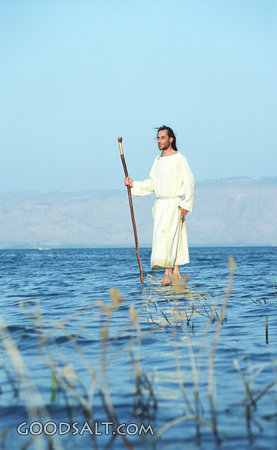 Matthew 14:25-29 Matthew 14:25-29 Mark 6:45-49 John 6:19 messiah, walk, water, christ, Jesus, miracle, miraculous, lake, white, hill, ocean, sea, robe, blue, staff, savior, hills, son of god, jesus christ, walking on water, sea grass PROJECTION - License for PowerPoint™ PRINT – buy a print of this picture; optional frame Bible Hub |