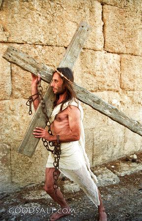 Road to Calvary John 19:16-17 messiah, walk, atonement, pain, calvary, golgotha, carrying, god, christ, Jesus, atone, atoning, carried, criminal, innocent, crown, sacrificial, guilty, savior, debt, cross, anguish, torment, burden, torture, crime, humiliation, load, paid, lonely, sacrifice, offering, painful, carry, love, walking, thorns, son of god, sacrificial love, crown of thorns, humiliating, humiliate, lamb of god, loincloth PROJECTION - License for PowerPoint™ PRINT – buy a print of this picture; optional frame Bible Hub |