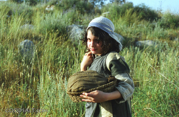 Loaves and Fishes John 6:9 travel, hot, lunch, journey, journeying, rural, country, countryside, child, boy, scarf, staff, determined, traveler, walking staff, loaves and fishes, lunch basket PROJECTION - License for PowerPoint™ PRINT – buy a print of this picture; optional frame Bible Hub |