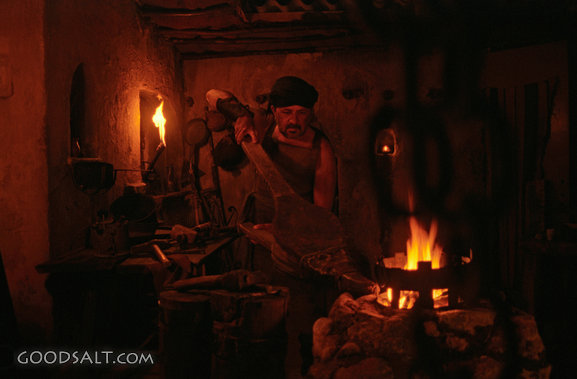 Refiner's Workshop 1 Peter 1:7 hot, heat, dark, worker, work, labor, workman, fire, red, silversmith, refiner, bellows, refine, workshop, goldsmith, metal smith, iron smith, sweaty PROJECTION - License for PowerPoint™ PRINT – buy a print of this picture; optional frame Bible Hub |