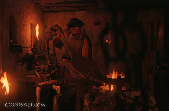 Refiner's Workshop Malachi 3:2-3 hot, heat, flame, dark, worker, work, rustic, labor, laborer, workman, fire, red, silversmith, refiner, bellows, refine, goldsmith, metal smith, iron smith PROJECTION - License for PowerPoint™ PRINT – buy a print of this picture; optional frame Bible Hub |