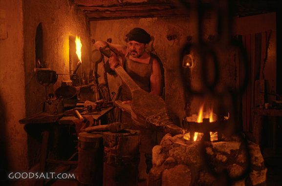 Refiner's Workshop Malachi 3:3 hot, flame, dark, worker, work, labor, laborer, workman, fire, red, tool, silversmith, refiner, tools, bellows, refine, workshop, goldsmith, metal smith, iron smith, frank gampel PROJECTION - License for PowerPoint™ PRINT – buy a print of this picture; optional frame Bible Hub |