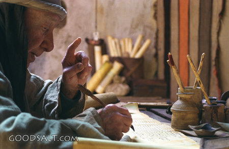 Scribe Writing on a Scroll in a Workshop Luke 1:1-3 Jeremiah 36:4 Exodus 34:27 Revelation 1:19 write, antique, ancient, elderly, scribe, writing, elder, Scriptures, scrolls, copier, copyist, penman PROJECTION - License for PowerPoint™ PRINT – buy a print of this picture; optional frame Bible Hub |