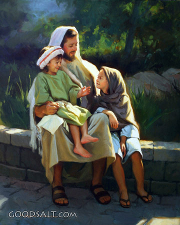 Suffer the Little Ones Matthew 19:14 Mark 10:14 Luke 18:16 happy, landscape, outside, Jesus, lap, knee, girl, child, boy, wall, sitting, children, kids PROJECTION - License for PowerPoint™ PRINT – buy a print of this picture; optional frame Bible Hub |