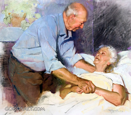 A Loving Touch Ephesians 5:28-29 help, aged, healing, sick, care, caucasian, couple, woman, man, elderly, old, bed, comfort, wife, husband, encouragement, reassure, infirm PROJECTION - License for PowerPoint™ PRINT – buy a print of this picture; optional frame Bible Hub |