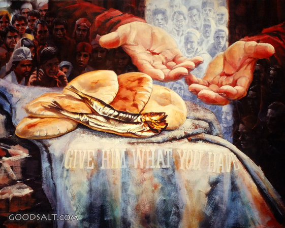 The Loaves and Fishes Matthew 14:13-21 Mark 6:30-44 Luke 9:10-17 John 6:1-13 Philippians 4:19 Matthew 6:25 Matthew 6:31 feed, miracle, feeding, thanksgiving, food, bread, giving, crowd, pierced, fish, 5000, surrender, need, loaves, hands, thanks, loaves and fishes, feeding 5000, nail pierced hands PROJECTION - License for PowerPoint™ PRINT – buy a print of this picture; optional frame Bible Hub |