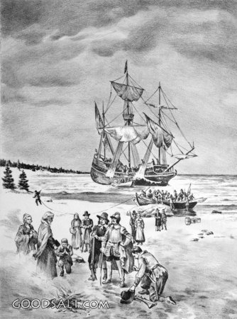drawing, pilgrim, landing, pray, mayflower, vintage, new england